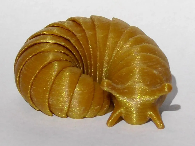 Introducing a 3D printed friendly articulated slug, a unique movable sculpture with flexible art design that captures the spirit of an articulated invertebrate. This 3D printed creature is perfect for lovers of interactive artwork and friendly animals. Its articulated joints provide a range of movement and posability, making it a perfect desk toy or desktop decoration. Hand-crafted with attention to detail, this art piece is sure to delight you and everyone around you. Get your hands on this amazing, one-of-a-kind work of art today.