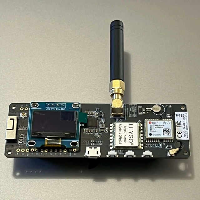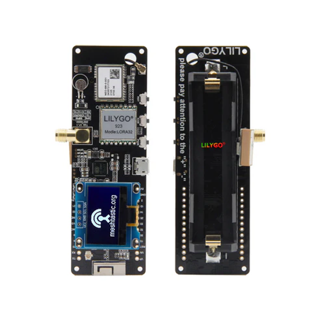 This LILYGO T-Beam V1.2 ESP32 LoRa Development Board comes with pre-installed Meshtastic and soldered 0.96' display. The board has a built-in Semtech SX1262 LoRa transceiver and is equipped with a NEO-6M GPS receiver.